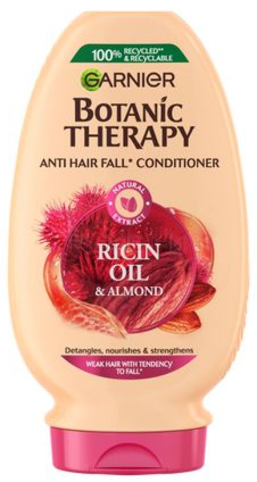 Garnier Botanic Therapy съчетава силата на рициновото масло, известно с укрепващите си свойства, и бадемовия протеин, който подхранва и омекотява. Балсамът е специално създаден за слаба, склонна към накъсване и косопад коса. Формулата укрепва фибрите на косъма, подобрява еластичността и улеснява разресването, без да утежнява. С всяко измиване косата изглежда по-здрава, по-плътна и по-силна.