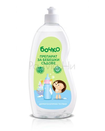 Бочко Препарат за бебешки съдове – 500 мл. Мек и безопасен препарат за почистване на бебешки шишета, аксесоари и съдове, който премахва мазнини и замърсявания, без да дразни деликатната кожа.