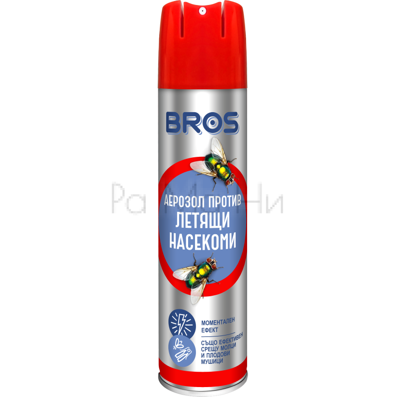 BROS Аерозол против летящи насекоми (400 мл) предлага ефективна и бърза защита срещу комари, мухи, оси и други летящи насекоми. Лесен за употреба спрей, подходящ за вътрешни и външни помещения, осигурява чиста и безопасна среда.