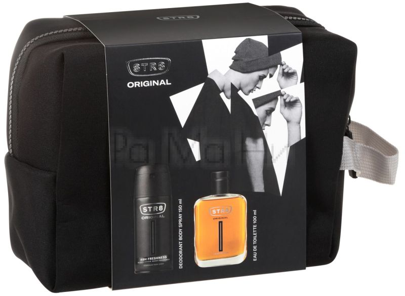 STR8 Original комплект: тоалетна вода 100 мл, дезодорант 150 мл и стилен несесер. Интензивен мъжествен аромат и практичен аксесоар за ежедневна грижа.