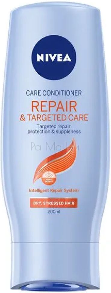 Nivea Repair & Targeted Care балсам 200 мл. Възстановява изтощената коса, подхранва в дълбочина и придава сила, мекота и здрав вид.