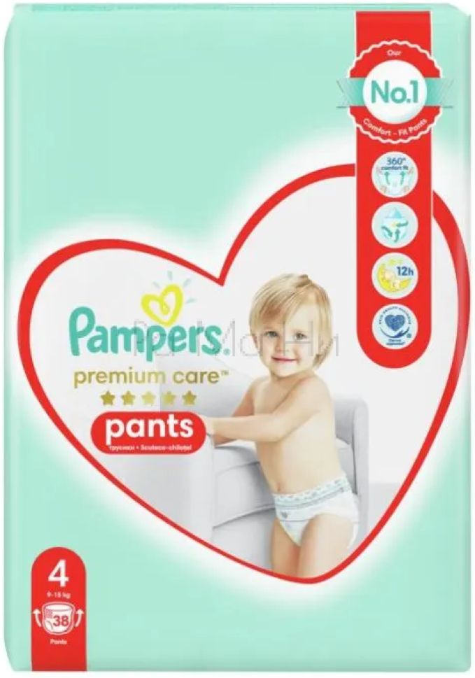 Pampers Premium Care 4 Pants са детски пелени-гащи за деца с тегло между 9 и 14 кг. Те осигуряват до 12 часа сухота и надеждна защита от протичане, като позволяват на детето да се движи свободно и удобно. Опаковката съдържа 38 броя.