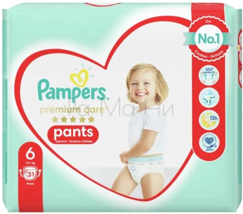 Pampers Premium Care 6 Pants са детски пелени-гащи за пораснали деца с тегло над 16 кг. Те осигуряват до 12 часа сухота и надеждна защита от протичане, като позволяват на детето да се движи свободно и удобно. Опаковката съдържа 31 броя.