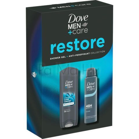 Мъжкият комплект Dove Restore ( Дав Рестор ) предлага перфектна комбинация от освежаваща грижа за тялото и надеждна защита през целия ден. Душ гелът 250 мл е обогатен с хидратиращи съставки, които почистват кожата нежно и възстановяват естествената ѝ мекота, оставяйки свеж и чист аромат след всяко душуване. Дезодорантът 150 мл допълва ритуала за грижа, като осигурява до 48 часа защита от изпотяване и неприятни миризми, без да изсушава кожата. Ароматът е енергизиращ и мъжествен, подходящ за спортен, динамичен и активен начин на живот. Комплектът е практичен, стилен и идеален избор както за лична употреба, така и като подарък.